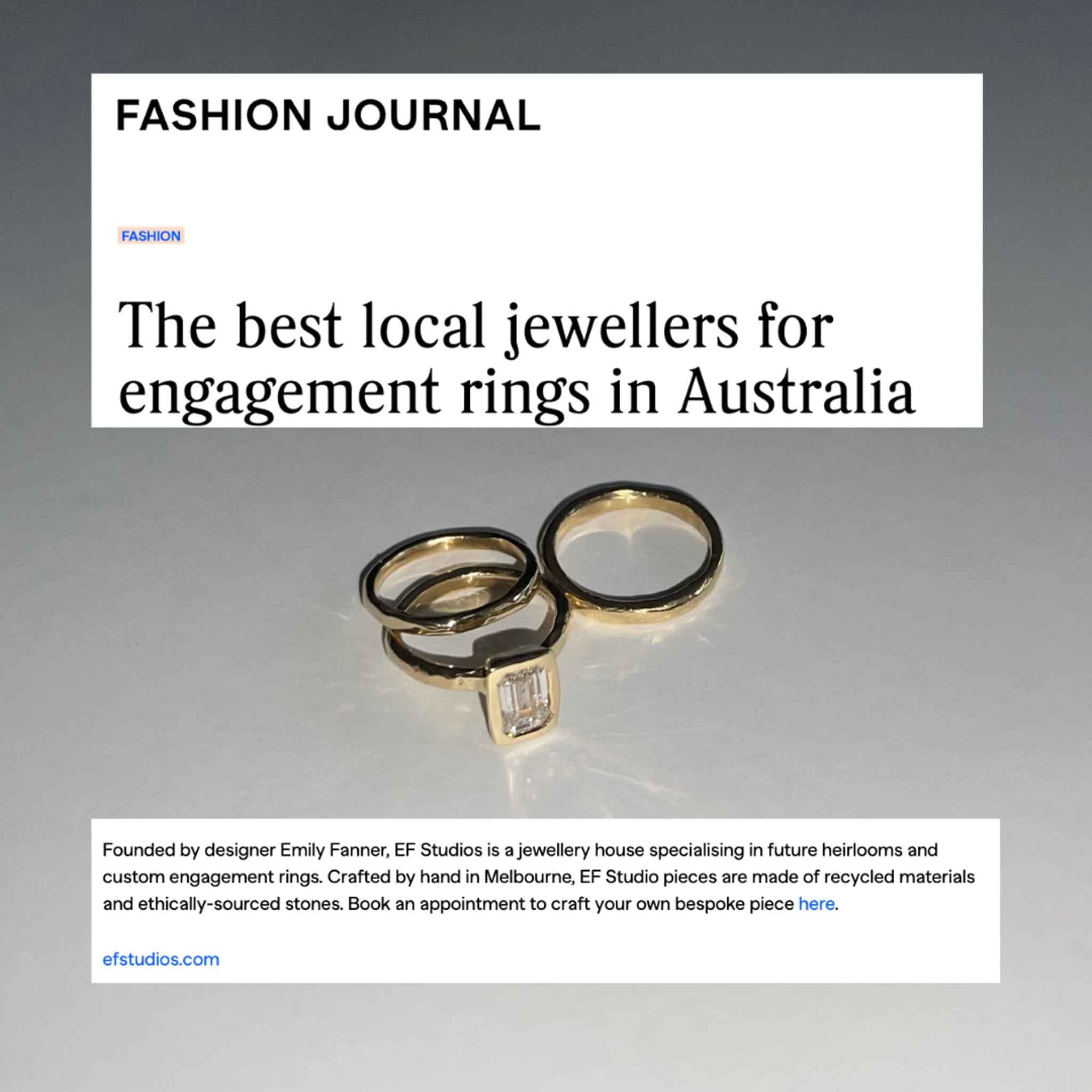 We have been so excited to see EF Studios listed in Fashion Journal as one of the best local jewellers for engagement rings.