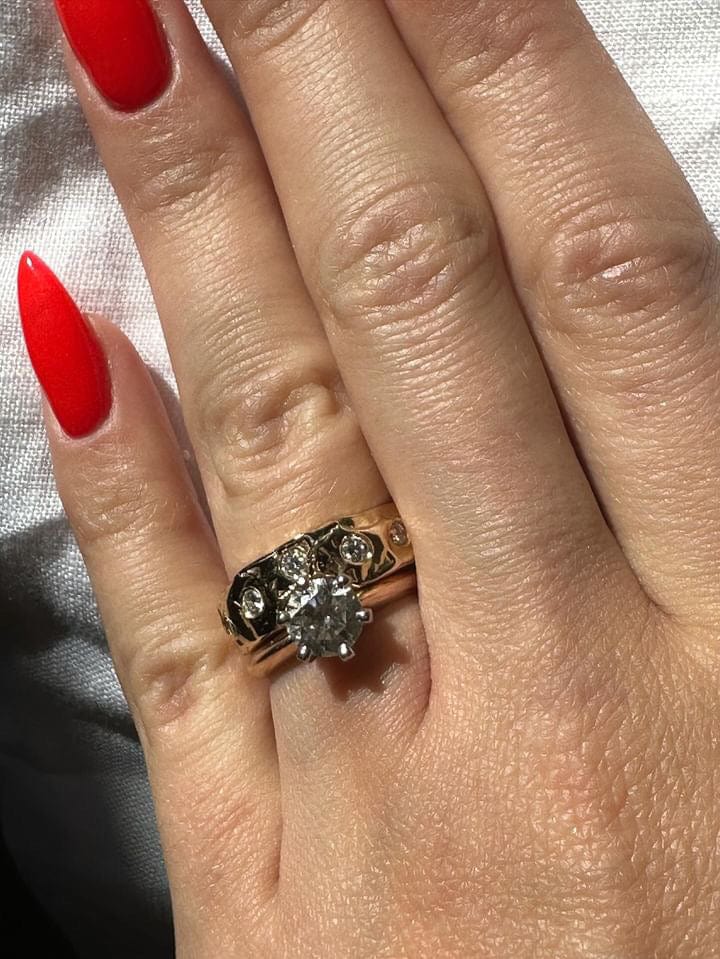 The result is a stunning, one-of-a-kind wedding band that beautifully complements Madi’s engagement ring, blending classic inspiration with modern design and sustainable practices.